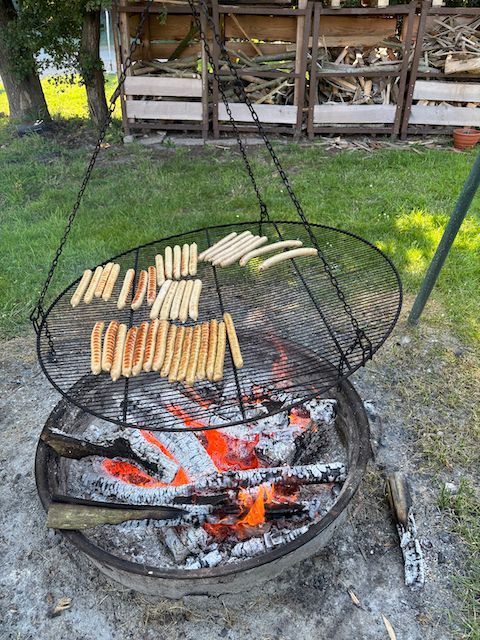 Anschließend wurde der Grill in Betrieb genommen und die unterschiedlichen Bratwürste gegrillt: Vegetatisch - also nur mit Pilzen, mit Fleisch vom Bunten Bentheimer Schwein und mit Pilzen und vom Wagyu-Rind mit Pilzen.