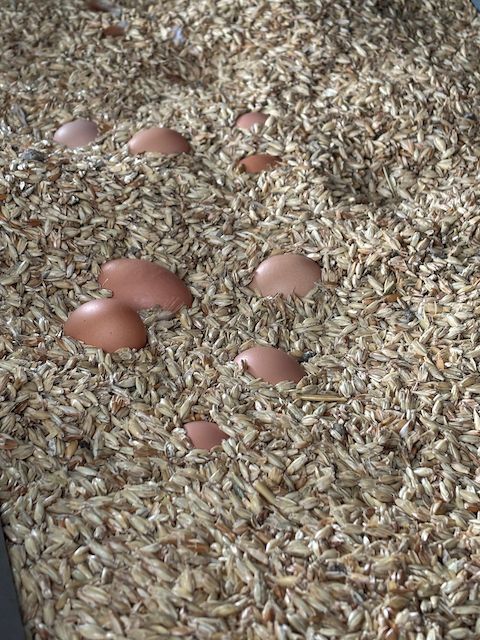 Für die Zucht werden öko-zertifizierte Substratballen eingesetzt, die bereits Pilzsporen enthalten. Die Zuchträume müssen möglichst keimfrei sein. So wird die insgesamt recht feuchte Luft mehrfach gereinigt. Für die gesamte Luftreinigung und Klimatisierung nutzt der Landwirt den Strom einer Photovoltaik-Anlage. Ein ‚rundes‘ System also. Und Eckard Janssen plant noch weiter: Da das Substrat unter anderem aus Gerste und Triticale besteht will er 20 Hektar seiner Landfläche in den nächsten Jahren auf Bio-Anbau umstellen, um dann entsprechende Pflanzen für die Substratherstellung anzubauen. So entwickelt sich auch hier nach und nach eine Kreislaufwirtschaft. Das abgeerntete Pilz-Substrat wird wieder in die Böden eingearbeitet.