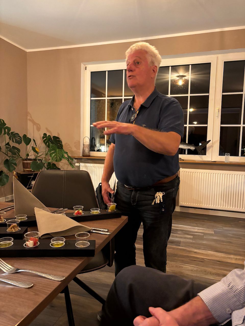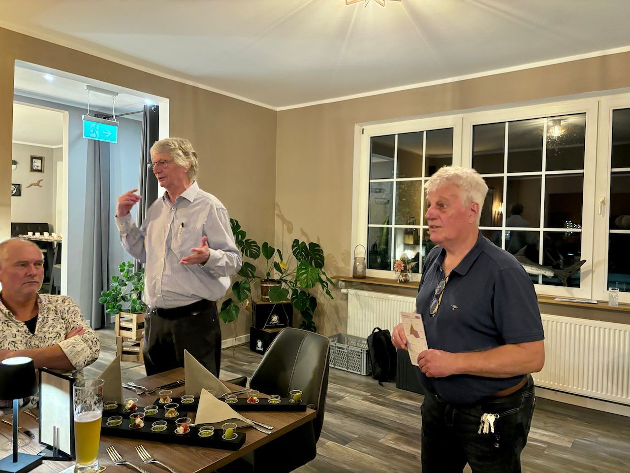 Damit auch der Genuss bei diesen „Genusstagen“ nicht zu kurz kam, trafen wir uns mit allen Beteiligten an beiden Abenden zum Essen, am Freitag in der „Hubertusklause“ und am Samstag im „Danzer’s“. Besonders hier war die Gruppe an unserem Tisch recht groß. Vertreten waren alle Generationen. Neben Mitarbeitern aus dem Team des Nationalpark Wattenmeer waren wir mit fünf Slowfoodies vertreten. Auch der Juister Bürgermeister hatte sich eingefunden und am späteren Abend kam dann noch Chefkoch und Eigentümer Stefan Danzer dazu. Was bei diesem tollen Essen mit regionalen Produkten an unserem großen Tisch dort im Restaurant passierte, war genussreich, kurzweilig und voller intensiver Gespräche. Vernetzung vom Feinsten! Der Abend wurde lang und länger.