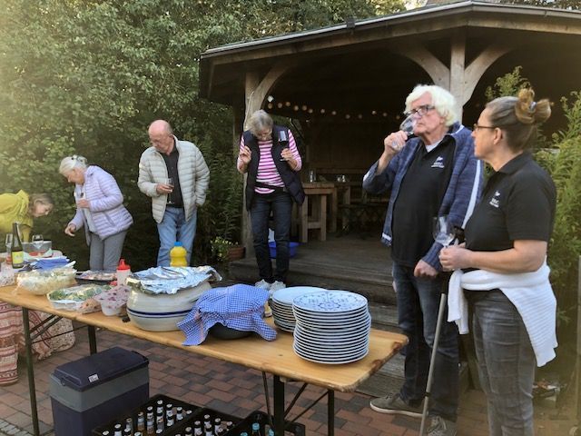 Es hat sich gelohnt. 16 Teilnehmer saßen am Stammtisch, der diesmal im Haus der Getreuen stattfand. Zu Beginn berichteten die Organisatoren über geplante Veranstaltungen und die nächsten Stammtische. Dann konnte endlich geschmaust und geklönt werden. Friesen-Tapas, Gulasch vom Friesen-Rind, Gnocchi in Tomatensauce und Schnitzel Wiener Art fanden ihre Genießer und zum Nachtisch schaffte noch der Käsekuchen oder die Rote Grütze den Weg in die spezielle Dessert-Lücke im Magen.