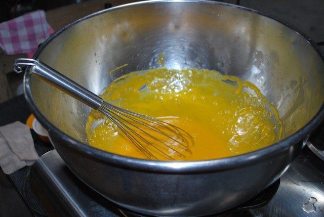 Eigelb mit Puderzucker und Amaretto zu Creme schlagen. Mascarpone mit der Eimasse vermischen. Steifgeschlagenes Eiweiß unter die Mascarpone-Creme heben.
