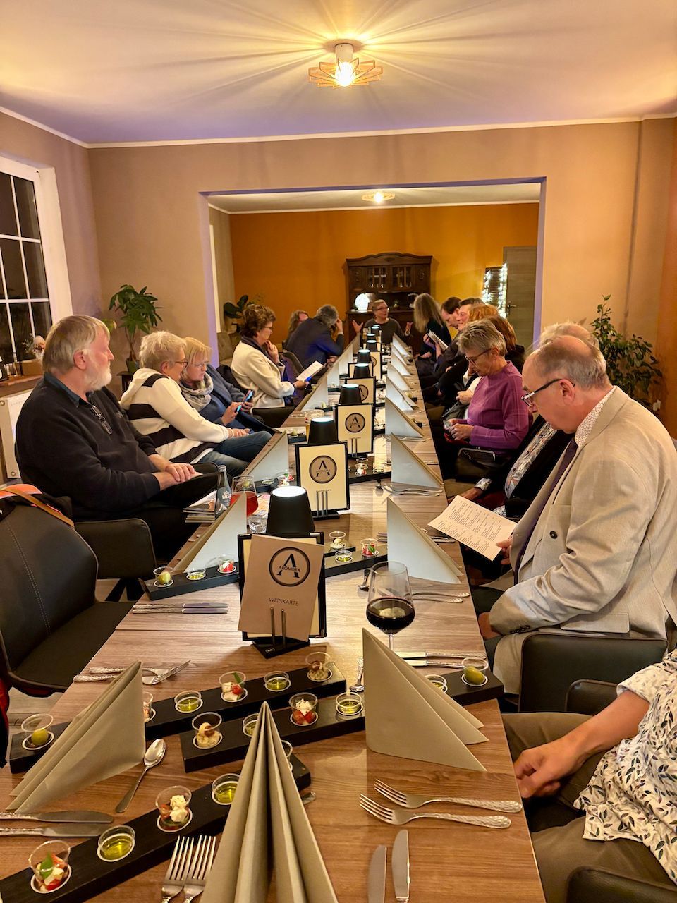 Damit auch der Genuss bei diesen „Genusstagen“ nicht zu kurz kam, trafen wir uns mit allen Beteiligten an beiden Abenden zum Essen, am Freitag in der „Hubertusklause“ und am Samstag im „Danzer’s“. Besonders hier war die Gruppe an unserem Tisch recht groß. Vertreten waren alle Generationen. Neben Mitarbeitern aus dem Team des Nationalpark Wattenmeer waren wir mit fünf Slowfoodies vertreten. Auch der Juister Bürgermeister hatte sich eingefunden und am späteren Abend kam dann noch Chefkoch und Eigentümer Stefan Danzer dazu. Was bei diesem tollen Essen mit regionalen Produkten an unserem großen Tisch dort im Restaurant passierte, war genussreich, kurzweilig und voller intensiver Gespräche. Vernetzung vom Feinsten! Der Abend wurde lang und länger.